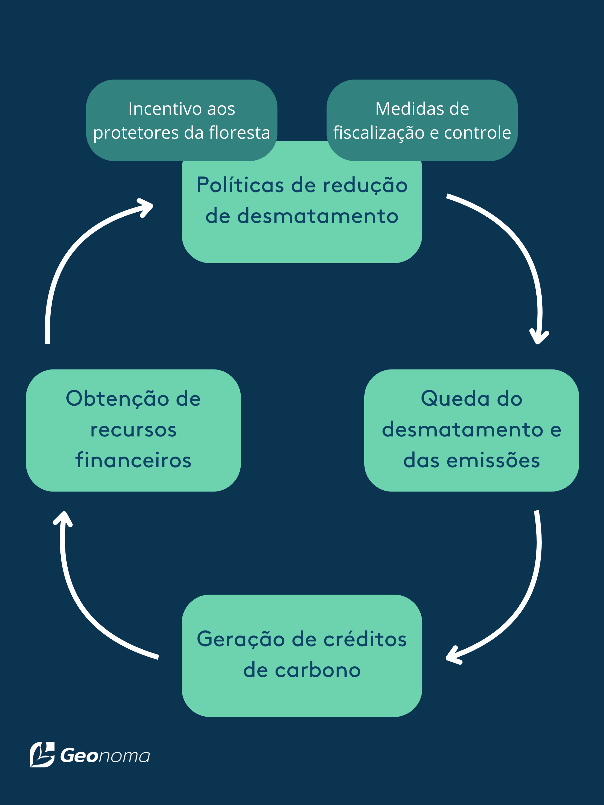 Dessa forma, no caso de um estado que realiza o programa, o governo deve promover políticas de redução de desmatamento, como fiscalizando e controlando o desmatamento e dando incentivos a quem protege a floresta. Com isso, o estado obtém uma redução do desmatamento (e, portanto, das emissões de carbono) e pode gerar os créditos de carbono. A partir da venda dos créditos, são obtidos recursos financeiros, que devem ser investidos nas políticas de redução de desmatamento. Assim, há um ciclo virtuoso que cada vez mais reduz o desmatamento e remunera quem está preservando a floresta.